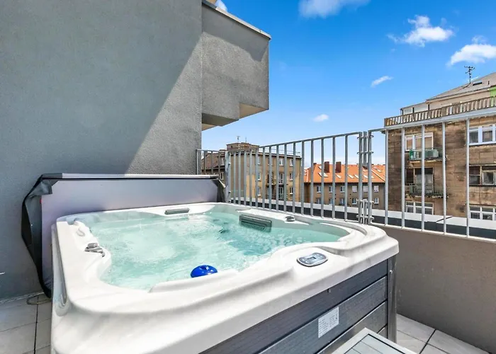 Appartement Lam Pink - Jacuzzi - Ac - Ps4 dispose d'une cuisine équipée avec un four et un lave-vaisselle. La gare de Bratislava est à 550 mètres, et l'arrêt de bus Karpatska est à 5 minutes à pied de cet établissement. Ajoutant au confort, l'appartement donne accès à un centre de bien-être pour une détente ultime.